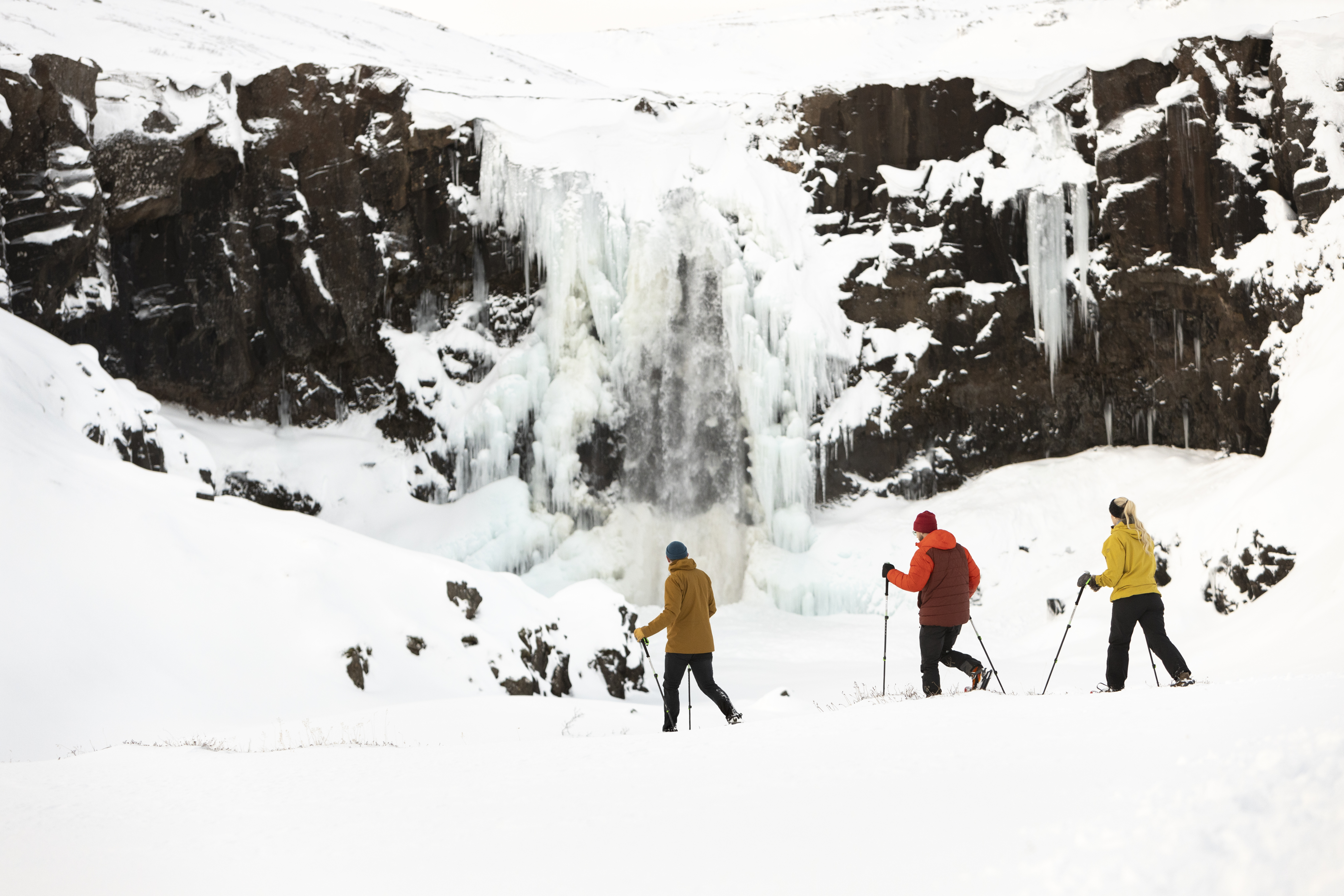 On the second day, add a light winter activity. Choose between a short waterfall hike, cross-country skiing, or a visit to Stuðlagil Canyon. On the third day, slow the pace further. Revisit a favorite village, enjoy a long Austurland café stop, or end the trip with a soak at Vök Baths.