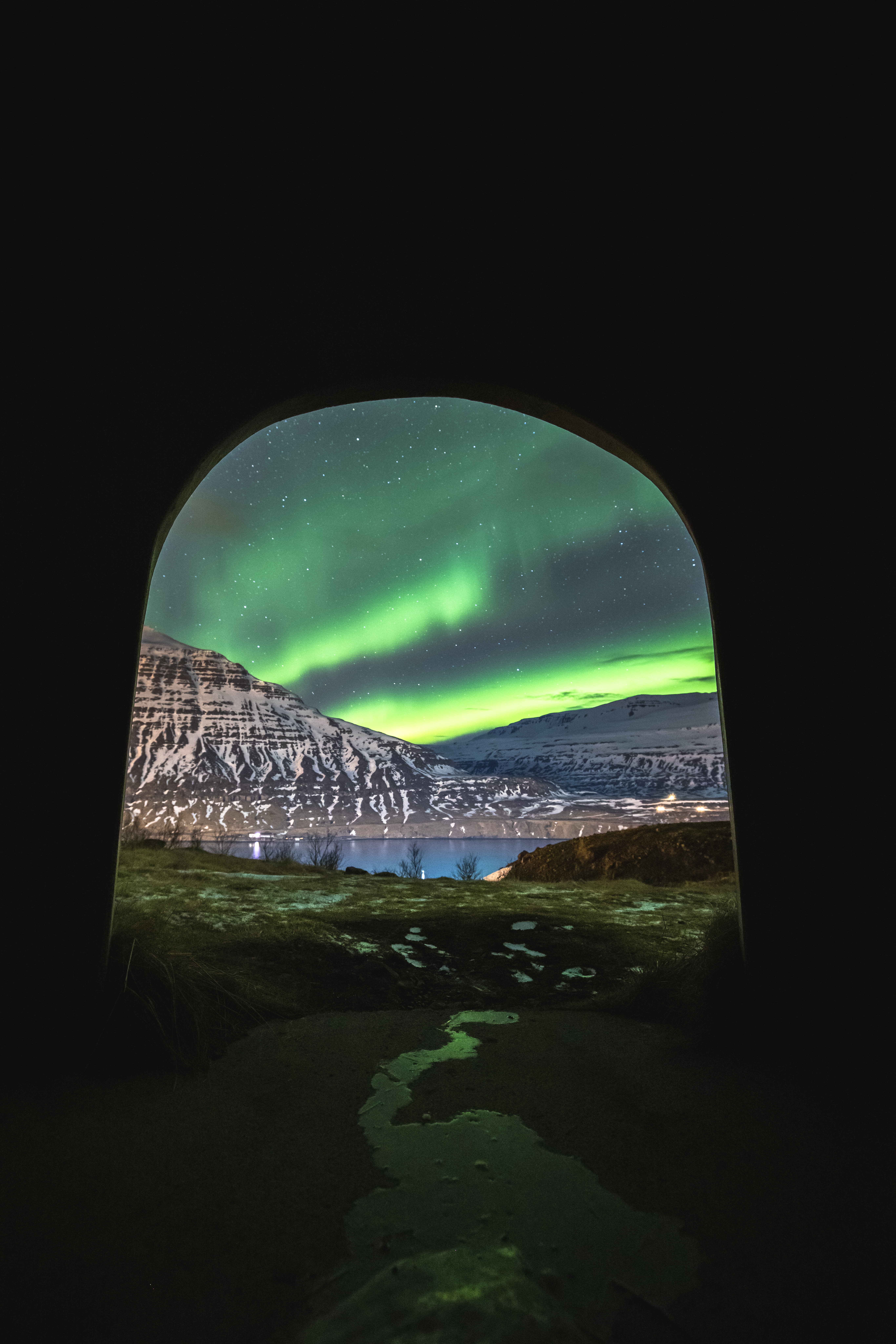 Seyðisfjörður offers some of the best viewing spots for the aurora. Surrounded by steep mountains and a deep fjord, it creates a natural bowl shape for watching the aurora. The lights often shine across the water's surface, making them appear twice as bright in the fjord below.