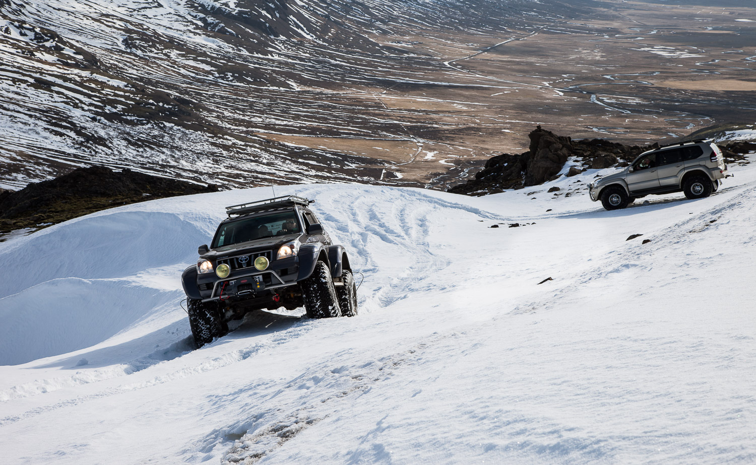 In heavy-snow winters, a Super Jeep is often the safest way to reach the striking basalt cliffs of Stuðlagil Canyon. Some tours continue into the highlands north of Vatnajökull, visiting glacial outwash plains and secluded plateaus few travelers ever see. Traveling on a Super Jeep unlocks remote corners, offering an intimate glimpse of East Iceland’s rugged, isolated beauty.