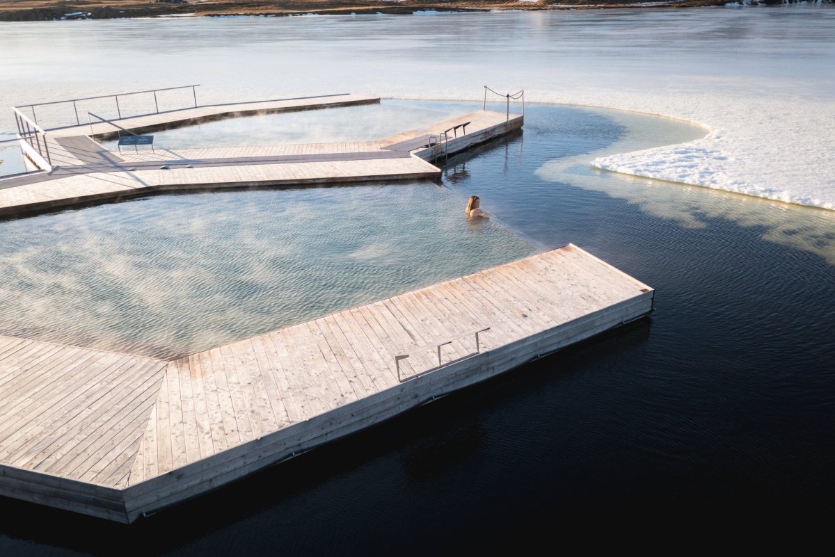 There are two floating pools at Vök Baths: