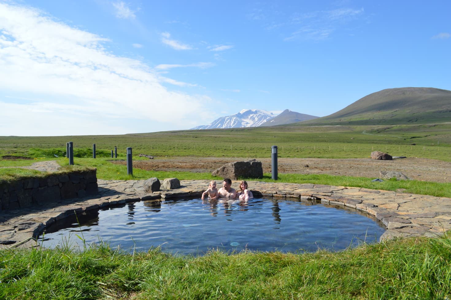 After admiring the canyon, head north on Rte 923 and you’ll reach Hwy 1, the Ring Road, and an easy, scenic return to Egilsstaðir. Stop at Rjúkandi, a waterfall by Hwy 1, then round out your exploring with a memorable soak in the warm geothermal waters of Vök Baths under the midnight sun.