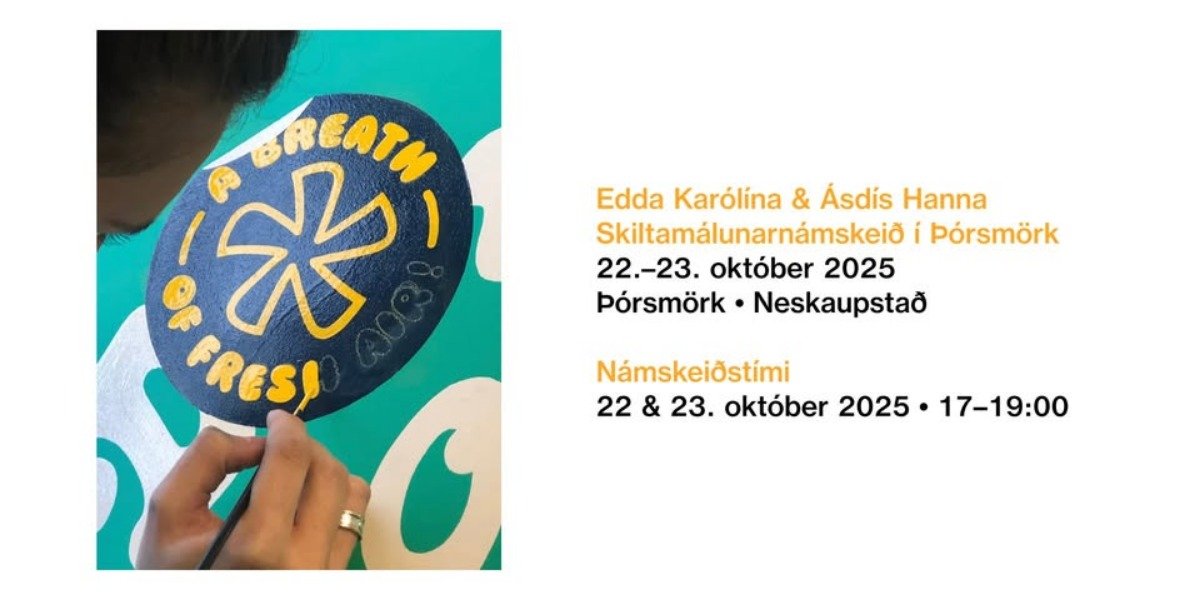 Námskeiðið kostar 5000kr fer fram miðvikudag og fimmtudag 22. -23. október milli 17.00 og 19.00. Námskeiðið er kennt af Eddu Karólínu og Ásdísi Hönnu. Edda lærði skiltamálun af skiltamálarameistara í Glasgow, Ásdís er leikmyndamálari og hafa þær báðar unnið sem skiltamálarar í mörg ár.